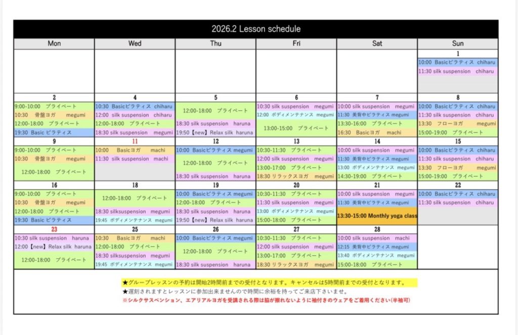 ②希望レッスン(ヨガ・ピラティス・シルクサスペンションのいずれか)